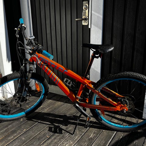 X-dirt barncykel med 20" hjul. Cykeln har svart ram med färgdetaljer, raka styre och barnsadel. Utrustad med skärmar fram och bak samt kedjeskydd. Lämplig för barn som passar på en cykel med 20-tums hjulstorlek.