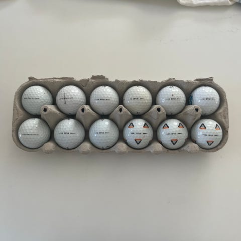12 st fina tvättade golfbollar varav 6 st är av märket Titleist st Tour soft, 4 st av märket Titleist NXT Tour och 2 st Titleist PRO v1x.