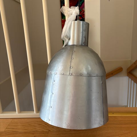 I krom/silver i bästa skick! Ett litet brännmärke på undersidan som inte syns när lampan är upphängd, se bild.