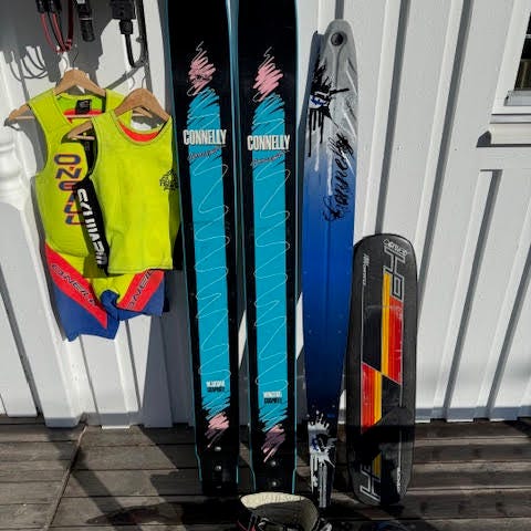 O’Brien combo vattenskidor för åkning efter båt. Skidorna har justerbara bindningar och är utformade för åkare på olika nivåer. Medföljer gör en draglina samt en flytväst. Utrustningen lämpar sig för rekreationsåkning på sjö eller hav.