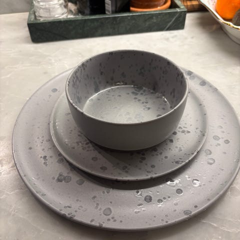 Superfin servis från Aida RAW, 48 delar i mycket gott skick. Hälften av servisen är i en ljusare grå och hälften i en mörkare grå färg.