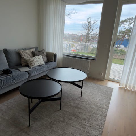 Säljer två runda, svarta soffbord i metall från Mio. Fina i skick, men med några skav som finns på bilderna.