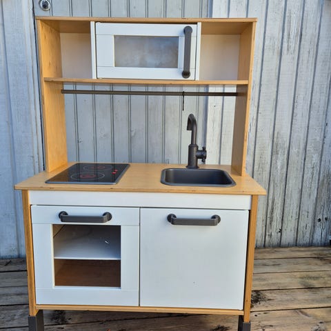 Micki spis med diskho. Fint skick dock saknas knappen längst till vänster (se bilden) Kommer med tillbehör som dockstol, köksredskap, koppar och fat.