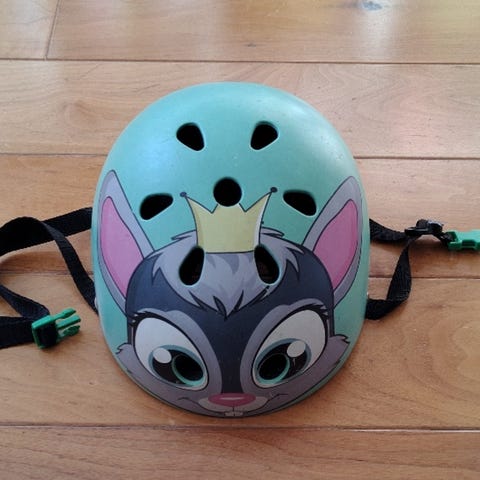 Etto cykelhjälm för barn i storlek XS. Hjälmen är rosa med prickigt mönster och motiv på sidan. Ventilationshål runt om för luftflöde och justerbara remmar under hakan. Invändigt finns vaddering för ökad komfort. Lämplig som cykelhjälm för mindre barn.