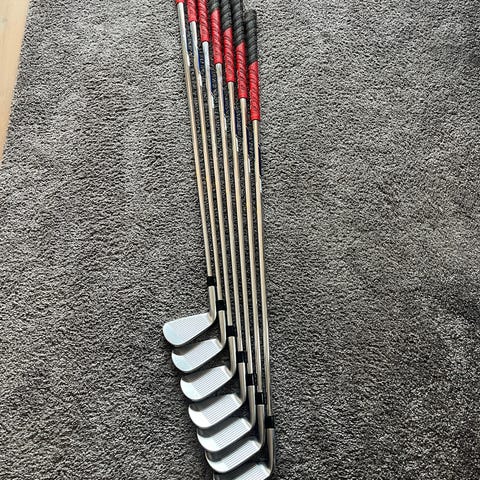 Förlängda ½ tum. Golf Pride mid-size grepp. Använda men i ok skick (se bilder). Skaftet på PW är bytt till ett liknande original.