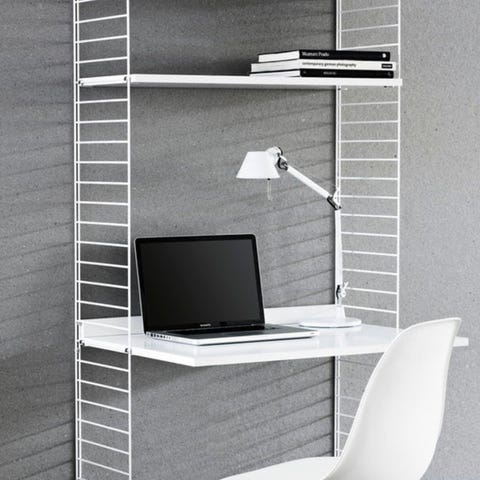 Vit arbetsskiva skrivbord till stringhylla. Använt skick, se bilder.