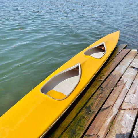 Säljer en blå Dubbelkajak från Tahe. Den är stabil och passar både till havs och på lugnare vatten. Kajaken har två sittbrunnar med sitsar och ryggstöd, samt förvaringsluckor i fören och aktern. Den är utrustad med roder i aktern. Två kapell samt en paddel ingår.