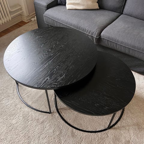 Soffbord i mörkt trä från nordic furniture group köpta på Ellos.