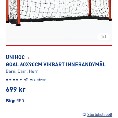 I princip oanvänt innebandymål, (Max 20 minuters användning), säljes. Mått 160*115