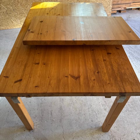 Äldre matbord i furu med 6st stolar med dyna