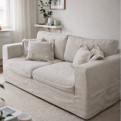Klädsel i 60% bomull och 40% linne. Klädseln är avtagbar på hela fåtöljen.