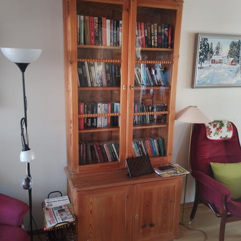 Bokhyllorna säljes pga flytt till annan bostad, leverans och bortforsling senare under sommaren. Bokning kan ske nu.