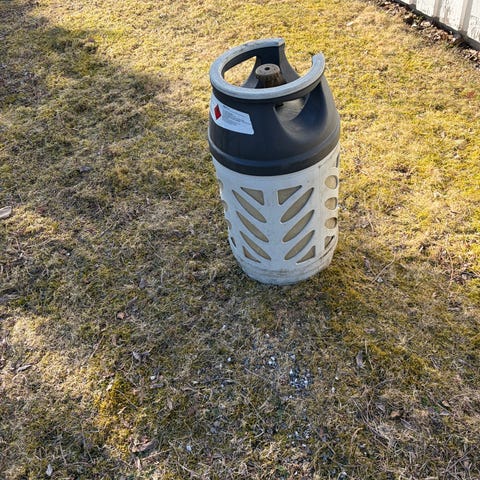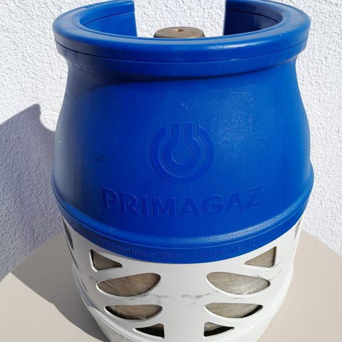 Aga gasolflaskor i olika storlekar. Flaskorna är avsedda för förvaring av gasol och kan användas till exempelvis grill, husvagn eller annan gasolutrustning. Två av flaskorna är kompositflaskor med bärhandtag och en är en traditionell metallflaska.