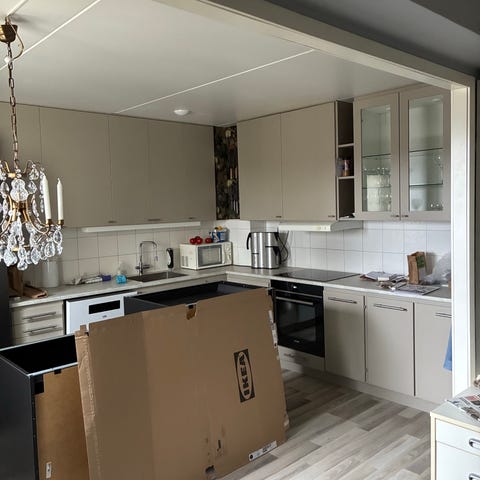 Köparen monterar själv ned kök mellan den 24-26/4.