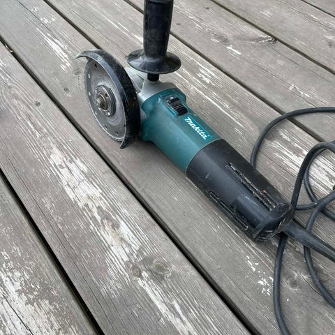 Makita DGA506 vinkelslip med 125 mm skivdiameter och 18V batterisystem. Maskinen har M14-spindel och sidhandtag för bättre kontroll vid slipning och kapning. Passar för användning med kompatibla 18V Makita-batterier och standard 125 mm kapskivor och slipskivor. Lämplig för metall- och betongarbeten samt andra vanliga kap- och slipuppgifter.