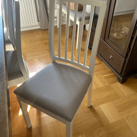Två vita stolar av modell Ingrid från Mio, med äldre mått.