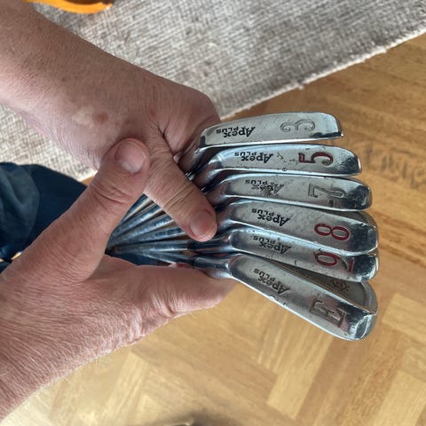 Ett fint järnset från ben Hogan som är änvänt i jätte gott skick. Järnen har 3-E men E = Pitching wedge, 3-7 är lite enklare att slå och 8-E är bladklubbor och skaften är orginal skaft (Stiff) med lite tjockare grepp som jag tycker är jätte skönt och ger mer känsla. jag skulle säga att dessa klubbor inte är till nybörjare