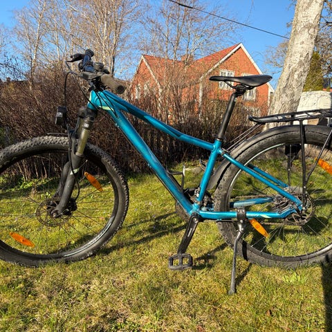 Utrustad med framgaffel med dämpning, skivbromsar och flera växlar anpassade för varierad terräng.