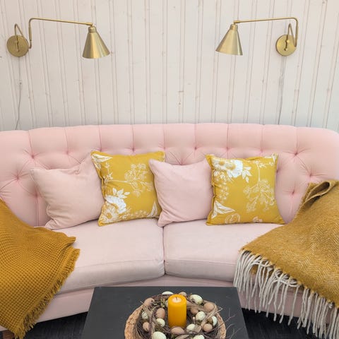 Delbar i tre sektioner, alltså lätt att flytta. Lösa dynor. Extra sittkuddar ingår.