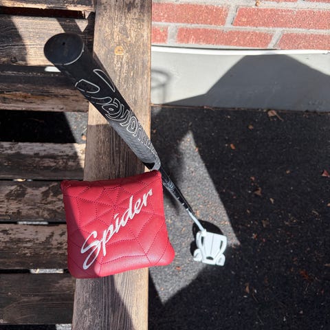 TaylorMade Spider GT putter i silver och svart. Mallet-huvud med tydliga siktslinjer på ovansidan för underlättad riktning. Huvudet är märkt med tungsten-viktning för stabilitet. Skaft i metall med Spider GT-grepp. Passar för golfspelare som söker en putter med hög stabilitet och tydlig alignment på green.