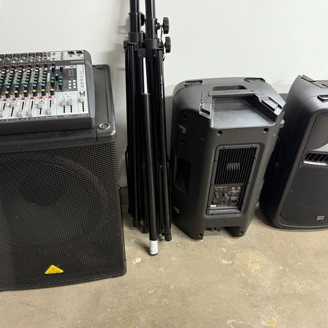 Technics stereoanläggning i svart utförande. Består av flera separata hifikomponenter staplade i ett system, inklusive förstärkare och olika ljudkällor. Till anläggningen hör fristående 2 högtalare från Technics i matchande svart design. Passar för uppspelning av musik i hemmamiljö med möjlighet att ansluta flera ljudkällor och högtalare. Dubbla bandspelare. Del med CD är ur funktion men säkert går att fixa . Skivspelare fans ej.