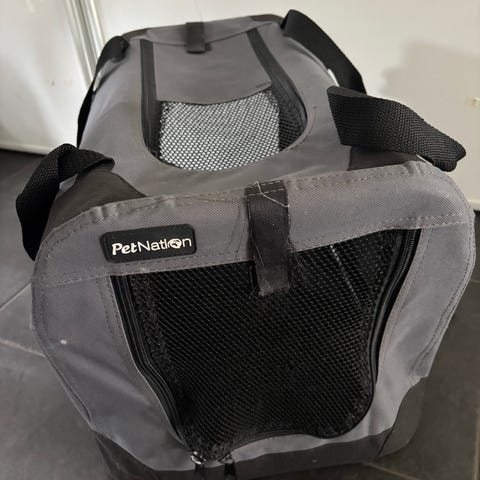 Stabil och rymlig transportbur från PetNation i fint skick. Perfekt för lite större hund eller längre resor.