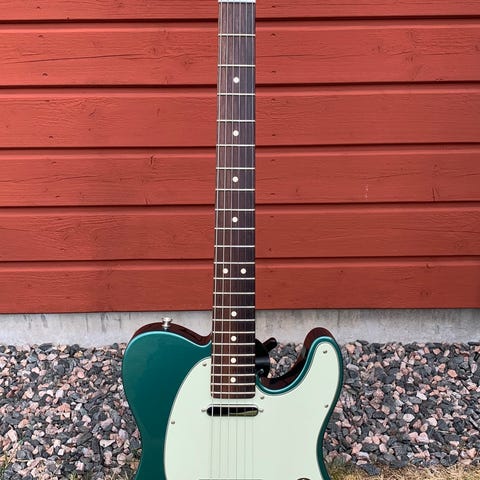 Fender Telecaster elgitarr i gul finish. Klassisk Telecaster-kropp med två single coil-mickar, trelägesomkopplare samt volym- och tonkontroll. Lönnhals och lönnbräda med skruvad halsinfästning. Genomgående strängdragning genom kroppen och traditionell Telecaster-stallkonstruktion. Passar för elgitarrspel inom många musikstilar där en Telecaster-design önskas.