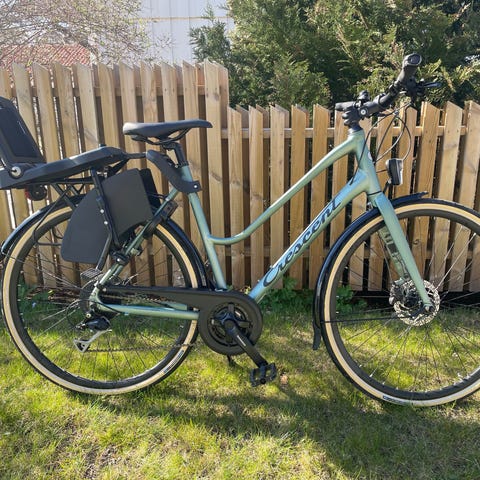 Giant hybridcykel för kvinna med ramstorlek M och 28" hjul (700c). Cykeln har lågt insteg, vilket underlättar på- och avstigning. Utrustad med pakethållare, stänkskärmar och reflexer. Passar för vardagscykling och pendling på blandat underlag i stadsmiljö och lättare landsväg. Hämtas på Ekerö.