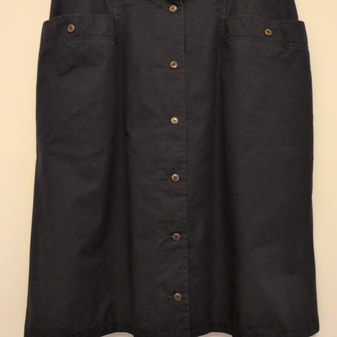 H&M kjol för dam i storlek 44. Rak, knälång modell i grått med knappar framtill. Tillverkad i polyester med slätt foder på insidan för ökad komfort. Passar till vardag och arbete samt kan kombineras med olika överdelar för ett mer uppklätt eller avslappnat uttryck.