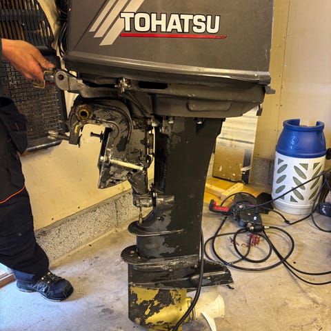 Startar och går men är lite osäker på kylsystemet då jag bara testat den på land och "skvallerstrålen" är lite svag, så jag säljer den som reservdelsmotor eller projekt för den händige för att inte ge fel förväntningar.