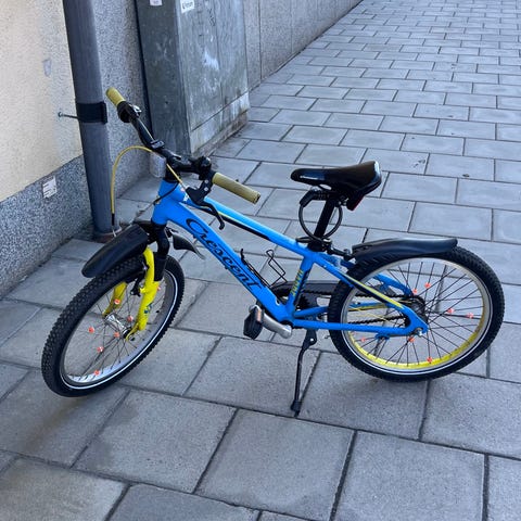 Crescent Narre 20 tum, 3 växlad. Dämpad framgaffel, stöd, ringklocka, fotbroms samt handbroms. Använd en säsong