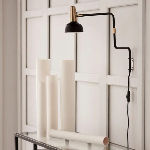 Vägglampa i metall och aluminium i grått och mässing från märket Zuiver modell Shadey. Nypris ca 5000 kr. Köpt på Brandstationen.
