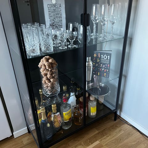 IKEA RUDSTA vitrinskåp svart glasmetall