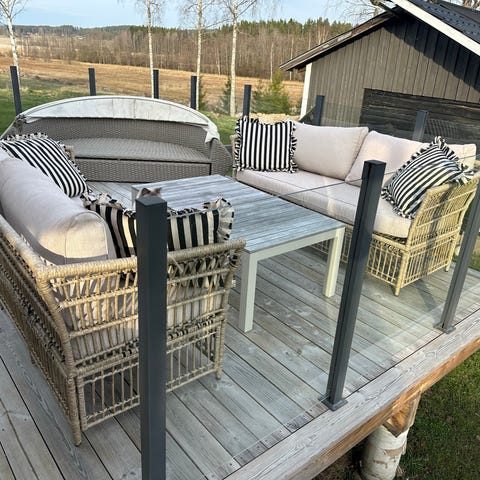 Möbelgruppen är avsedd för utomhusbruk under tak eller på skyddad plats.