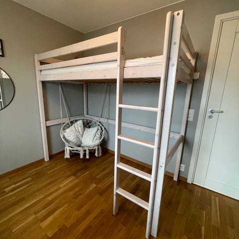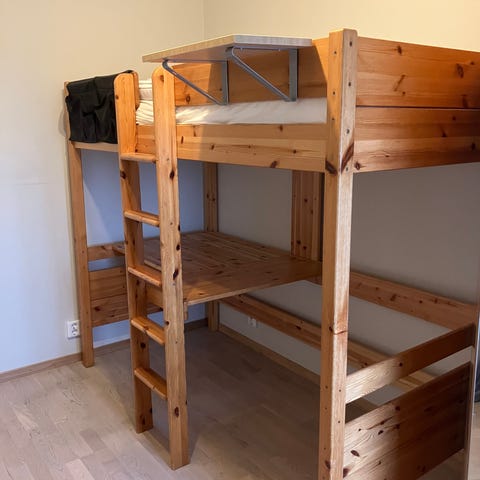 Säljer en loftsäng, utan madrass, bredd 140, längd 200, höjd ca 220 tror jag, isär monterad, finns uppe på vinden i förråd kan ta ut från förrådet, ta med bärhjälp, finns i luleå, billigare vid snabb affär måste bort innan 3 maj pga flytt