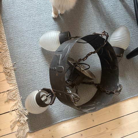 Mycket fin ljuskrona i konstsmide som är tiverkad av en lokal smed Skåne.