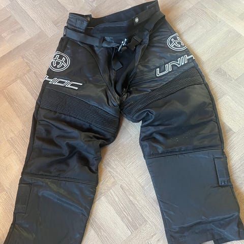 Unihoc målvaktsbyxa i svart och orange färg. Den är använd men inget fel på den och priset kan diskuteras