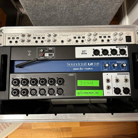 Ljudpaket, en bas Behringer med bluetooth, Soundcraft mixer, två aktiva högtalare med stativ och alla kablar.