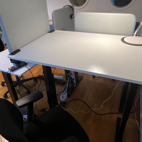 Skrivbordsskärm i ljusgrått tyg. Bordsskärm ZONE Inkl. svarta beslag, 600x650x36 mm, tyg Etna, ljusgrå. Rektangulär modell med rundade hörn som monteras på skrivbordskant. Passar för avskärmning mellan arbetsplatser och för att dämpa ljud i kontorsmiljö. Ytan är klädd i textil och lämpar sig för kontor, hemmakontor eller andra arbetsplatser där man vill skapa en tydligare avgränsning mellan skrivbord.