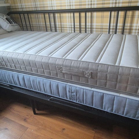 Dagbädd/bäddsoffa med extra utdragssäng under huvudmadrassen.