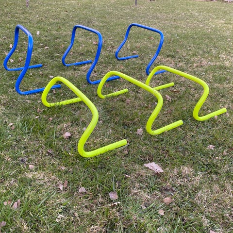 innebandymål i mindre storlek, lämpliga för barn och inomhuslek. Målen har röd ram och svart nät. Passar för lek med innebandyboll eller liknande bollar på exempelvis altan, garage eller inomhus på hårt golv. Säljs som set med två mål.