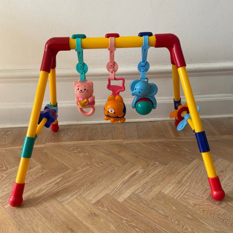 Babygym i trä från najell. Jättefint babygym där man kan hänga på de leksaker man vill 😀 sparsamt använt i 2 månader, kartong finns kvar. Slutsålt på hemsidan.
