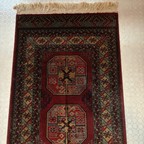 Säljer en vacker handknuten matta i klassisk Khal Mohammadi-stil med djup röd färg och traditionella mönster. Passar perfekt i hall, gång eller som dekorativ detalj i hemmet.