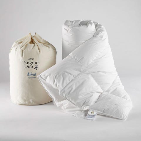 Ellos Engmo i finaste myskanddun. Duntäcket är 220x220 och 2 dunkuddar 50x60 vit