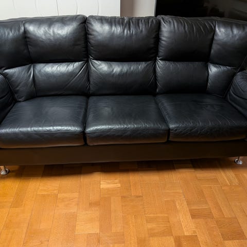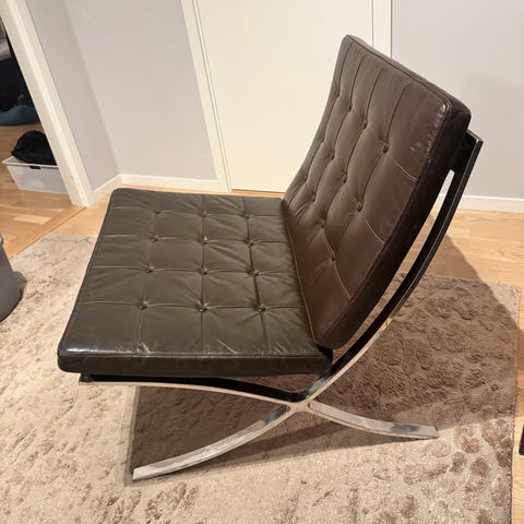 Fåtölj som inte är nött i lädret. Dock saknas 4 knappar. Som ny i kromstativet. Fler bilder kan skickas om önskemål