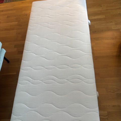 Jysk resårmadrass i vit färg som formas efter kroppen. Madrassen har vågformat quiltat överdrag. Passar till sängram i motsvarande storlek. Lämplig för användning i sovrum eller gästrum som vanlig sängmadrass.