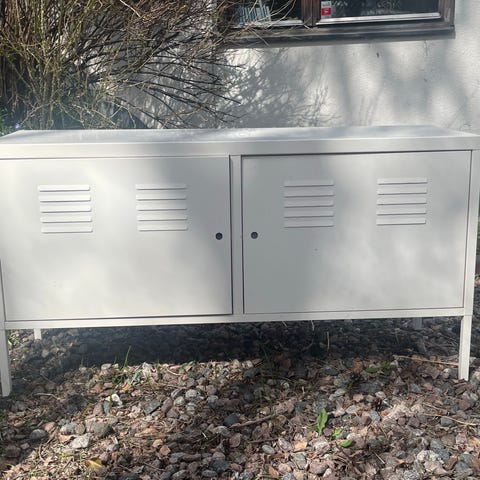 Brun byra med tecken med synliga revor på lådorna men målat lite om. Funkar bra som vanligt.