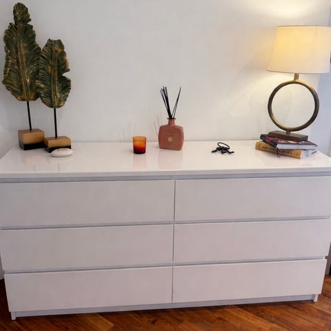 Bortsett från att den vänstra bottenlådan saknar frontpanelen och dess lådsskenor sitter lite löst (enkelt att fixa!) så är den i gott skick och omhändertagen.