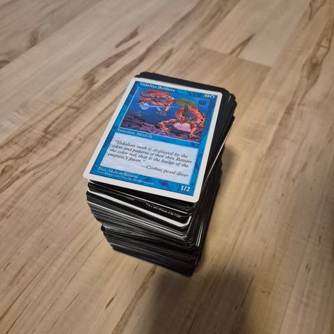 Omkring 300st Magic The Gathering kort säljs i okej skick. Blandade kort, C/U, länder och basics från olika set.