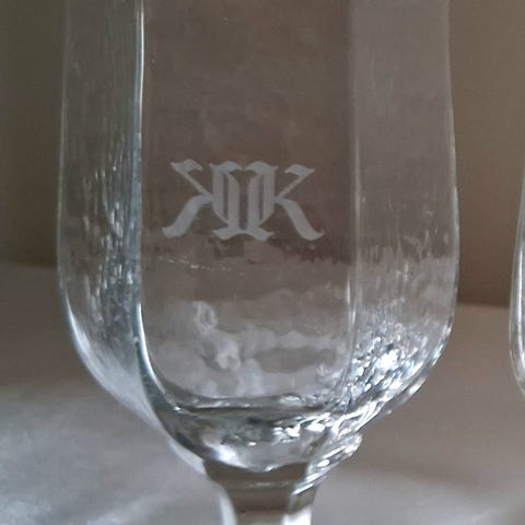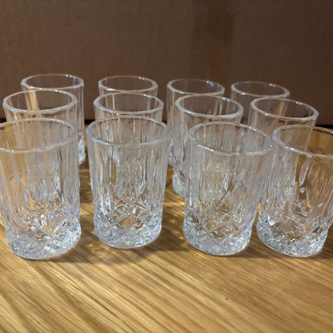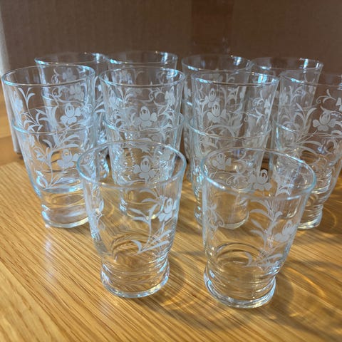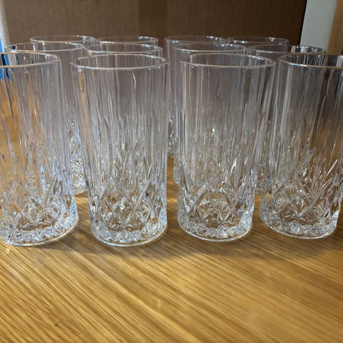 Totalt 15 glas i två storlekar 9st 35,5cl och 6st 47cl, ett av de större glasen är kanstött som visat på bild.
